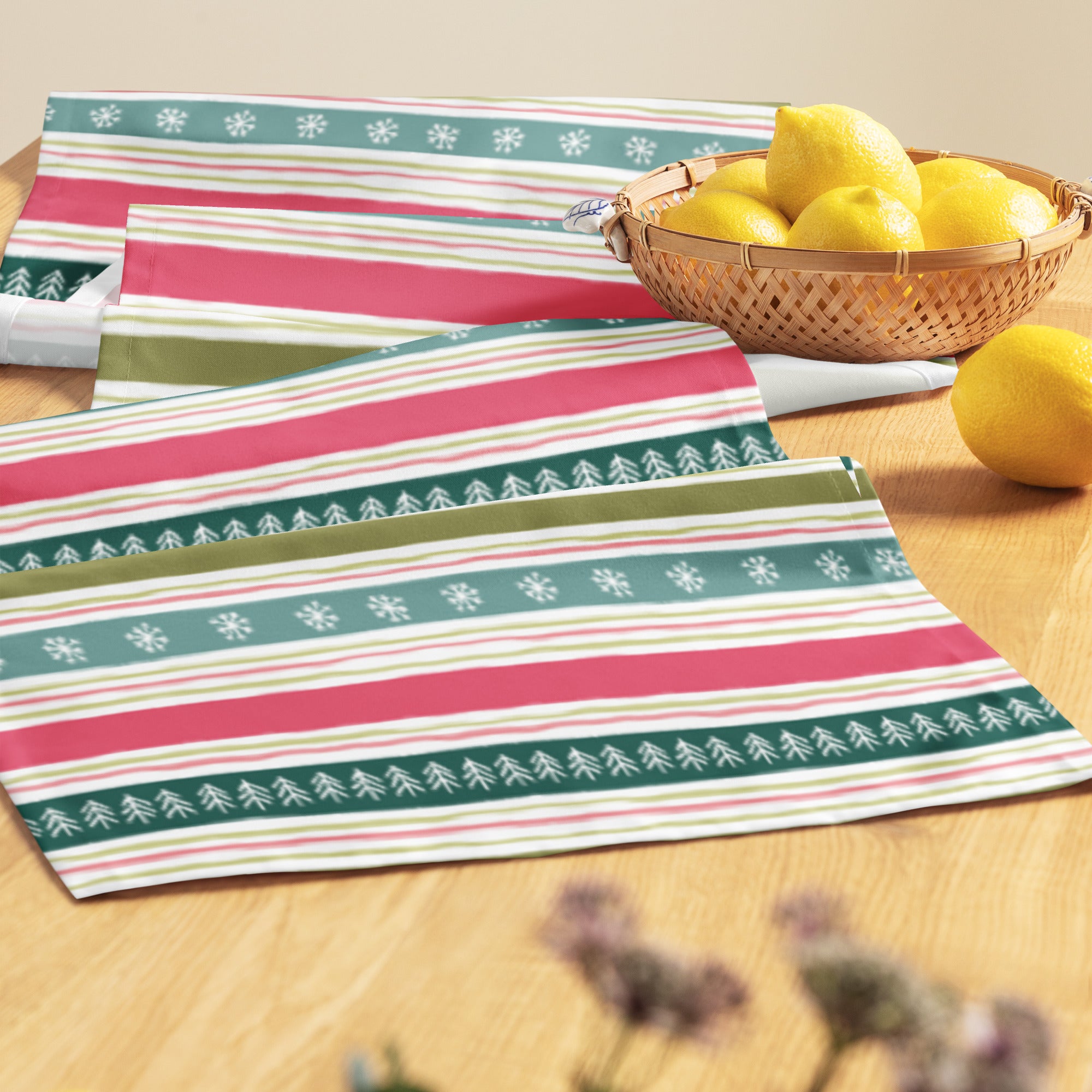 Crafted from resilient fabric, this table runner is both soft and enduring. Whether for everyday elegance or holiday charm, it will make meal times with loved ones a little more special. Treat yourself to this delightful table accessory or consider it as a thoughtful gift for someone special.