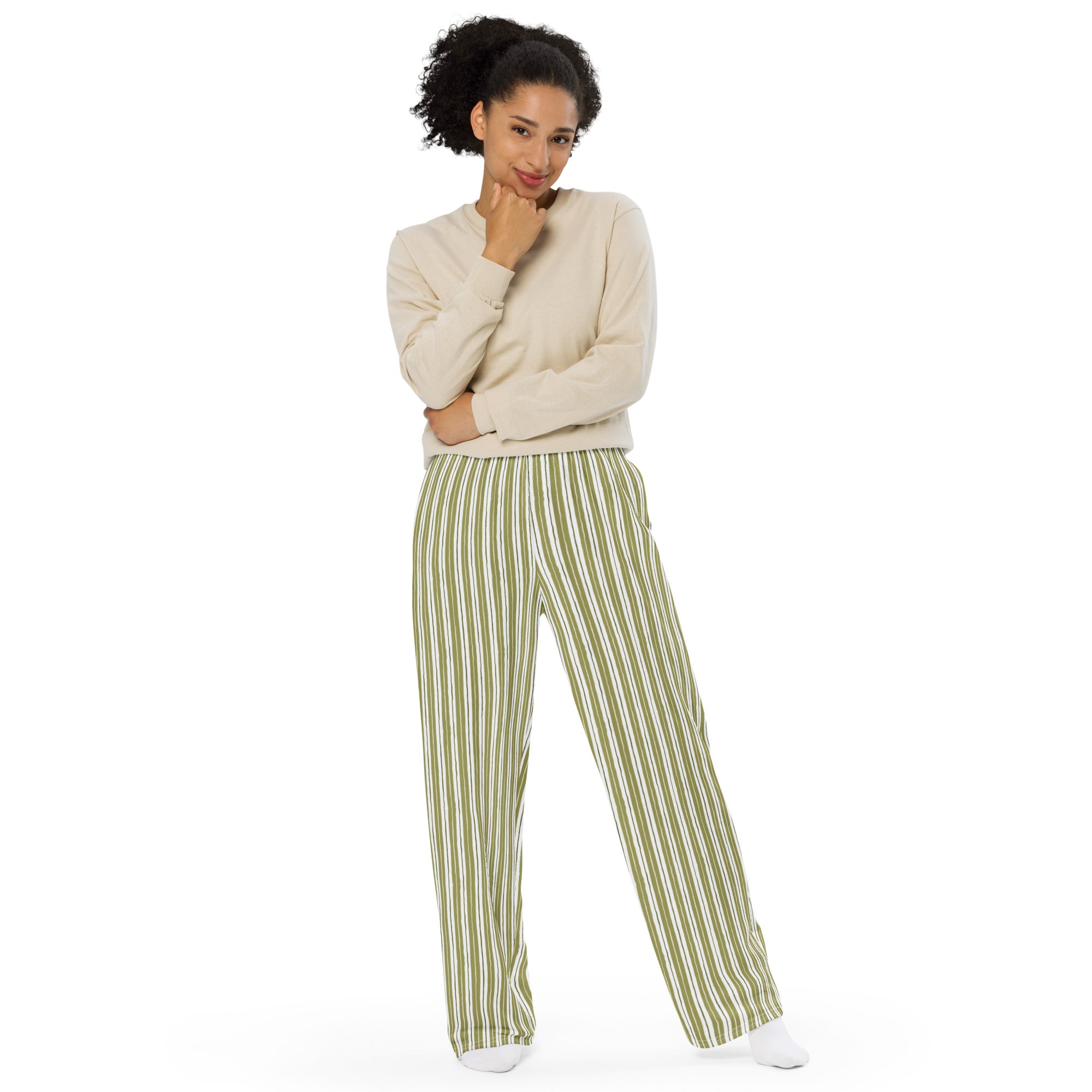Moss Stripes Wide-Leg 'Cozy' Pajamas Pants